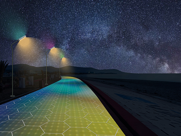 ▲光能宝盒发电地砖夜间景观亮化效果